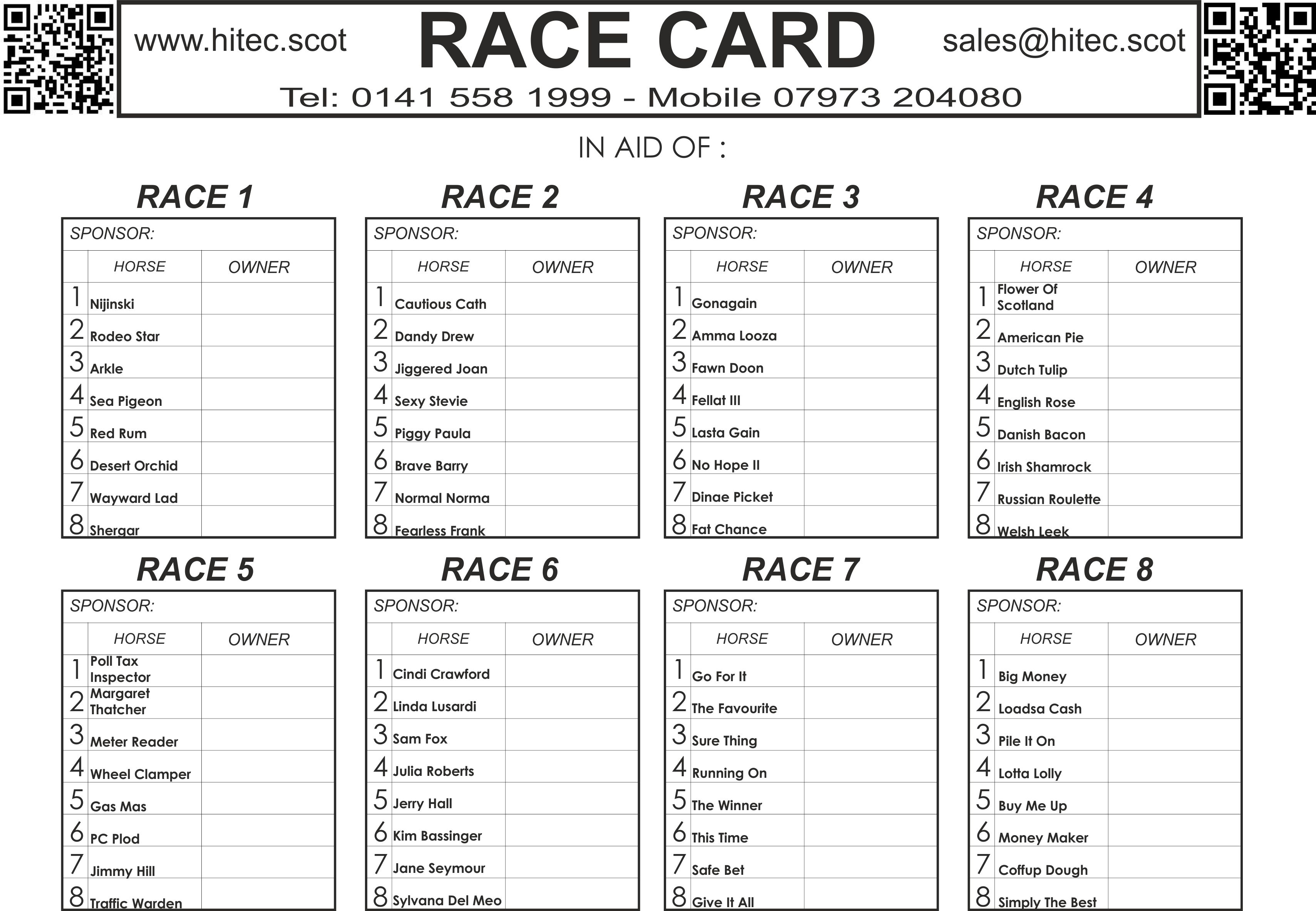 View a copy of our Named Racecard (click the link and save the jpg for editing/printing):
